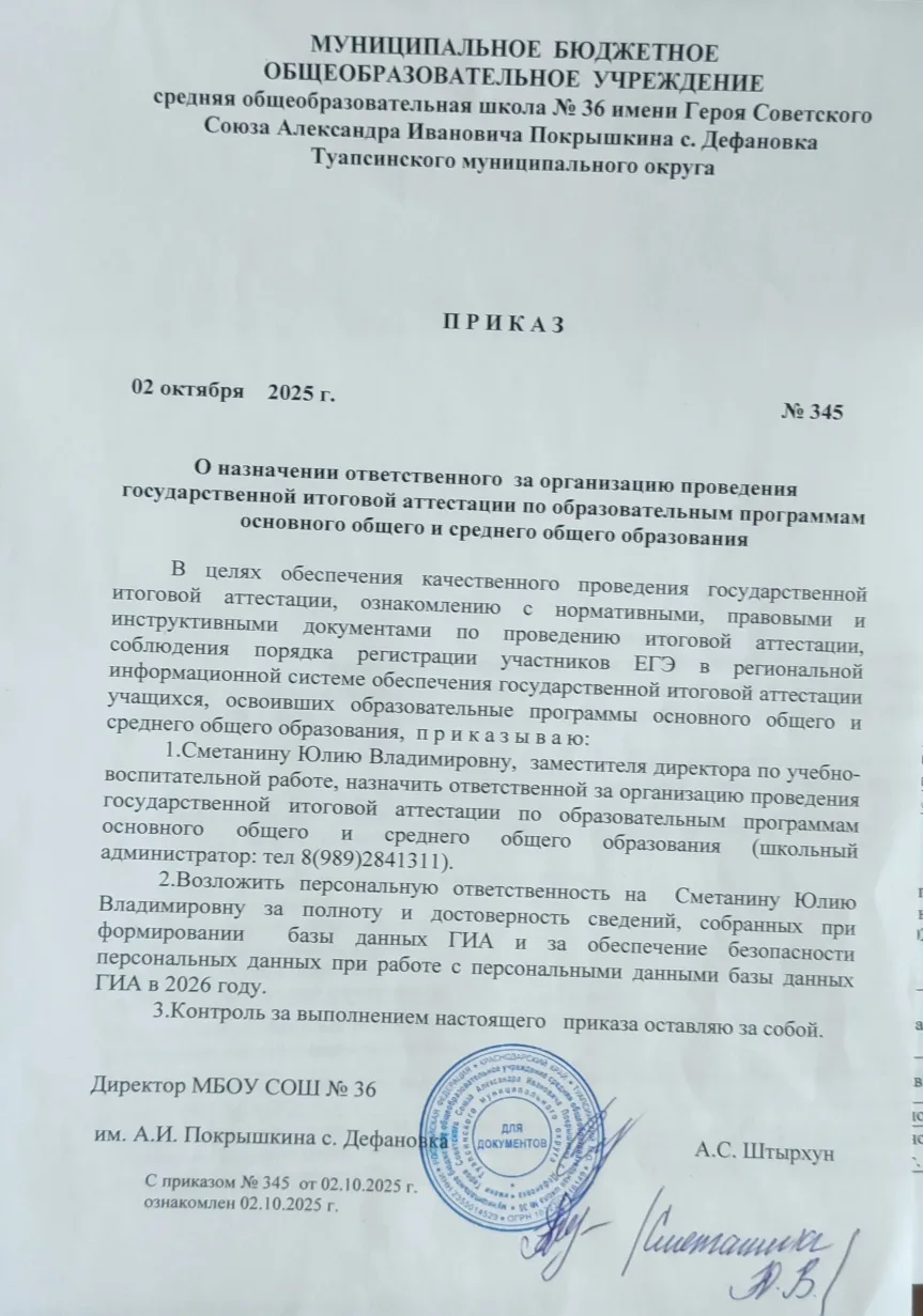 МБОУ СОШ № 36 им. А.И. Покрышкина с. Дефановка |